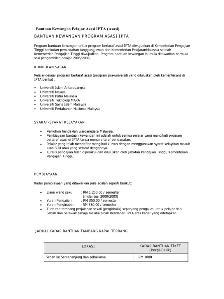 Bantuan Kewangan Pelajar Asasi Ipta Pdf